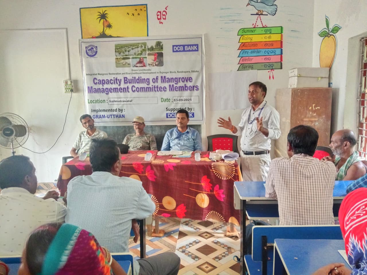Gram-Utthan, in collaboration with DCB Bank Limited, is implementing the project titled “Green Livelihoods: Integrated Mangrove Restoration and Eco-Livelihood Development” to enhance environmental sustainability and strengthen community resilience. The initiative focuses on community-led mangrove plantation, community based pond cleaning and aquaculture farming, Boundary plantation around community ponds, promotion of nutri-gardens, support for duck/poultry rearing, and capacity-building activities.