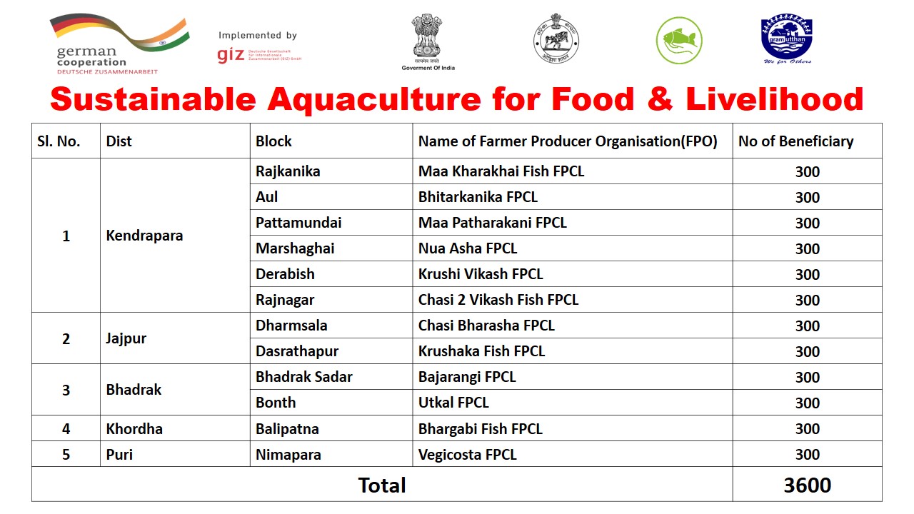 Gram-Utthan is implementing the “Sustainable Aquaculture for Food & Livelihood (SAFAL) supported by German Cooperation & GIZ Germany.